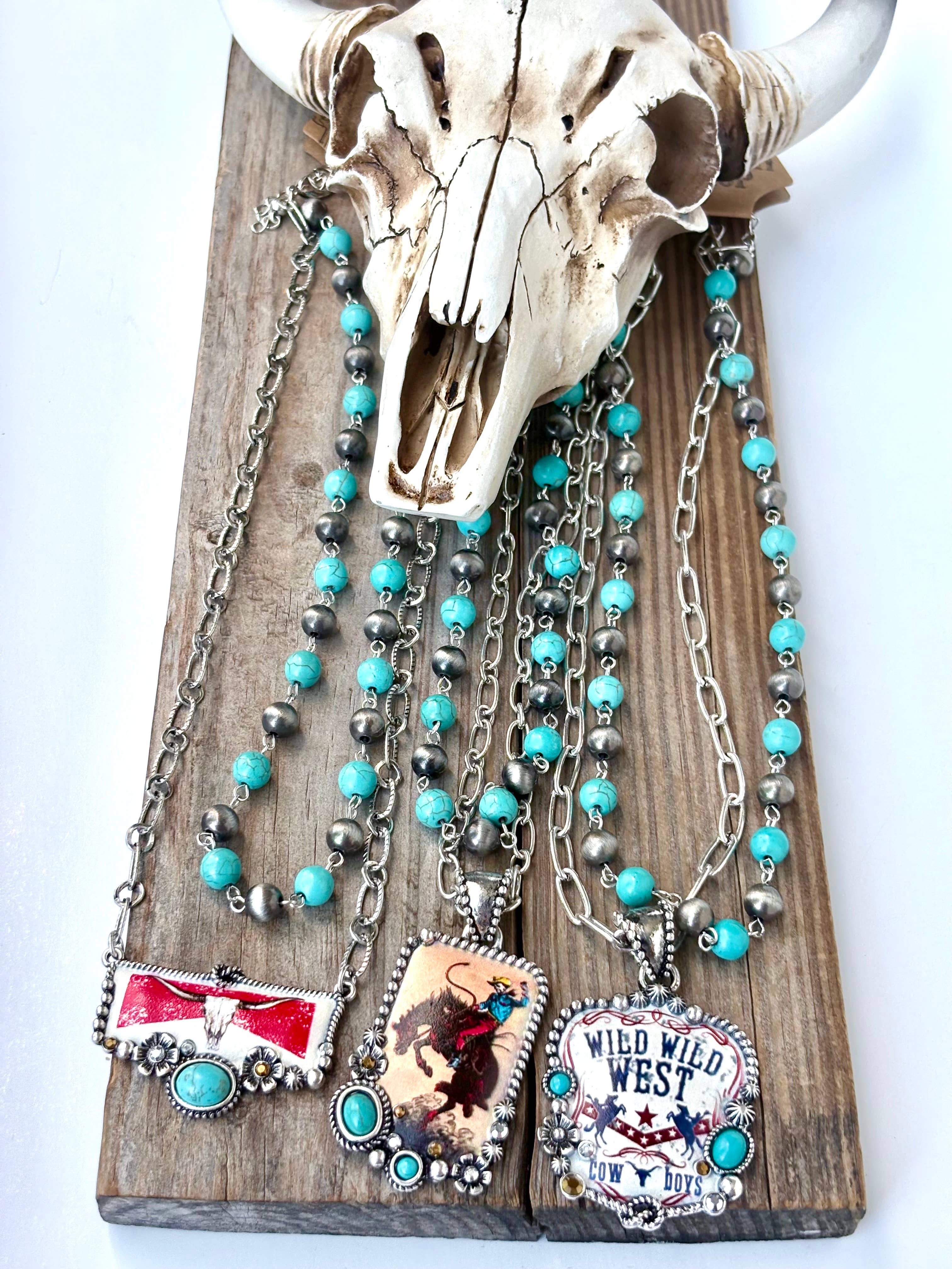 2 Layered Navajo Pearl & Turquoise Stone Bead w/ Western Style Colored Pendant Necklace Size: 18"L + 3"L Pendant: 1.25"L,...