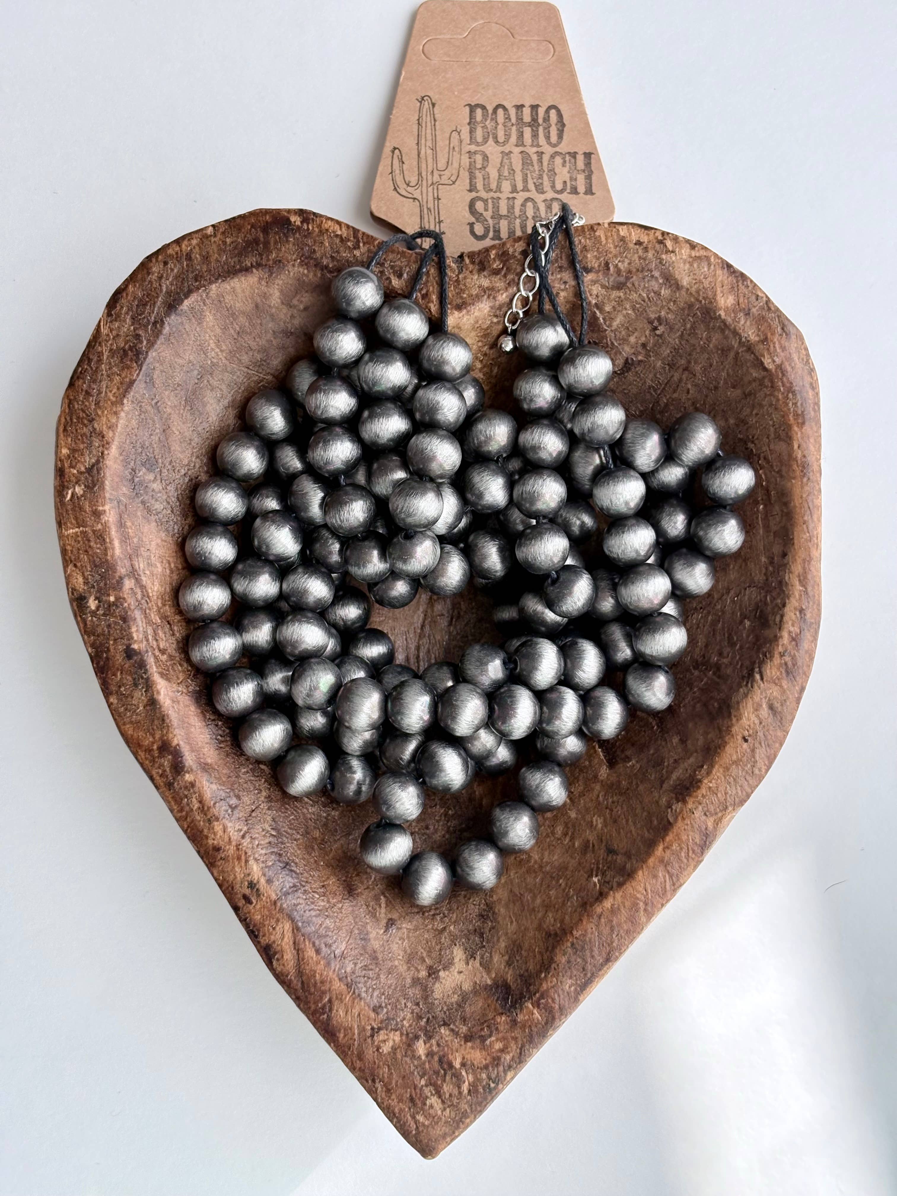 3 Layered Western Style 10mm Navajo Pearl Bead Necklace Size: 19" + 3"L Lobster Claw Clasps Brushed Silver, 10mm Navajo...