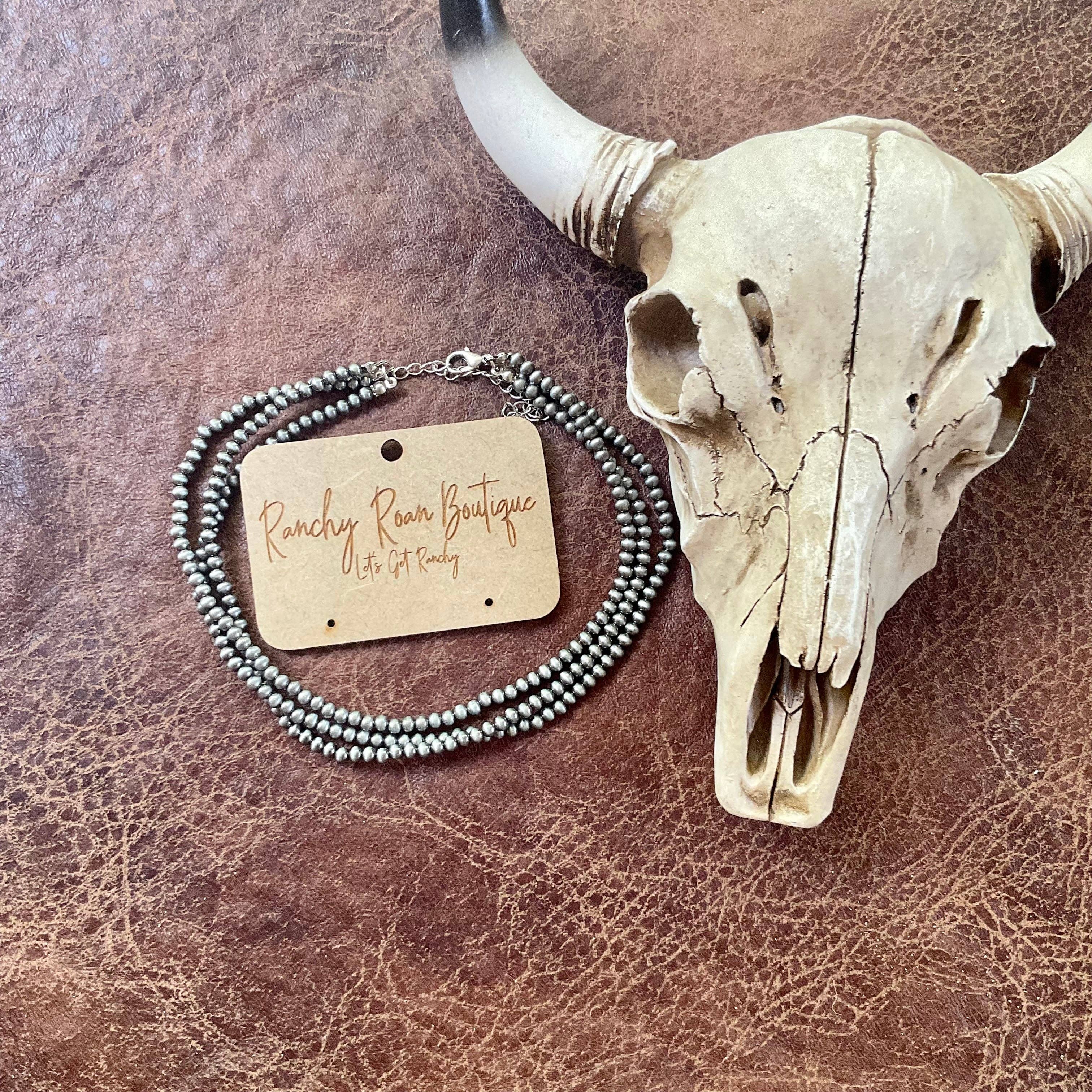 4mm Navajo Style Pearl Layered Choker Burnished Silver Color