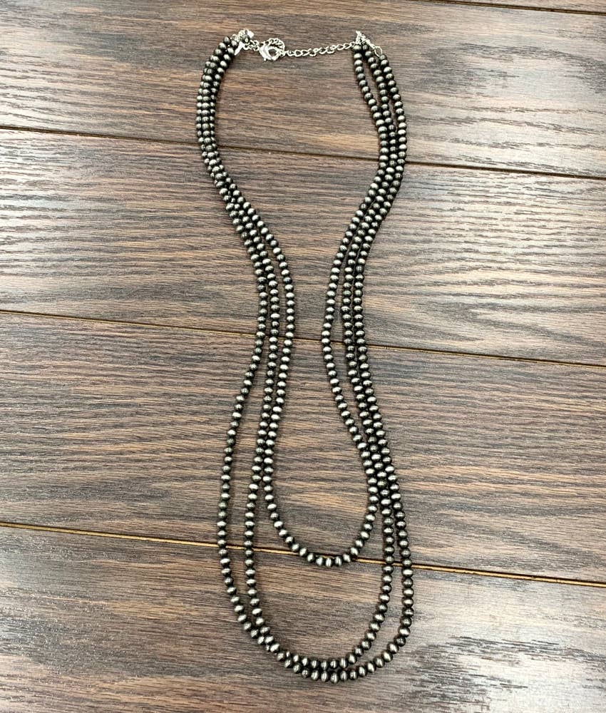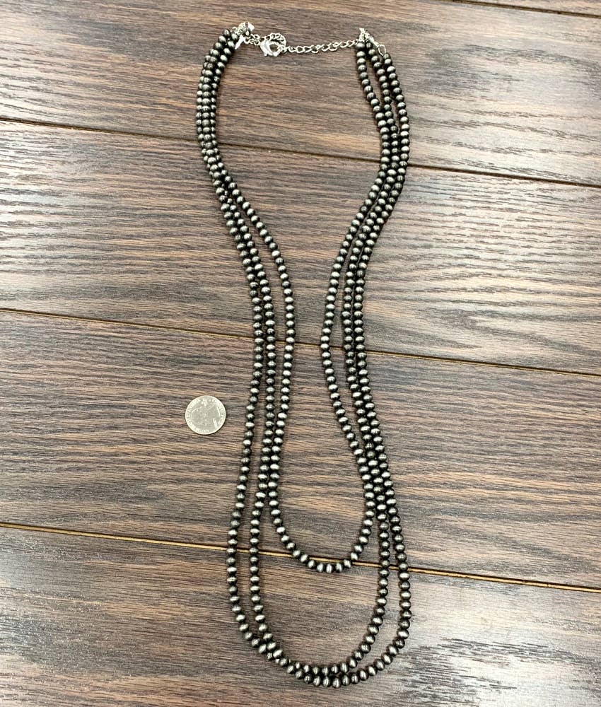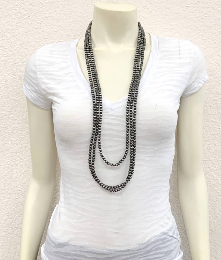 34" to 39" Extra-Long, Handmade 3-strand Navajo Bead Necklace * 3-strand (30", 34", 34" long) necklace & 5" extender *...