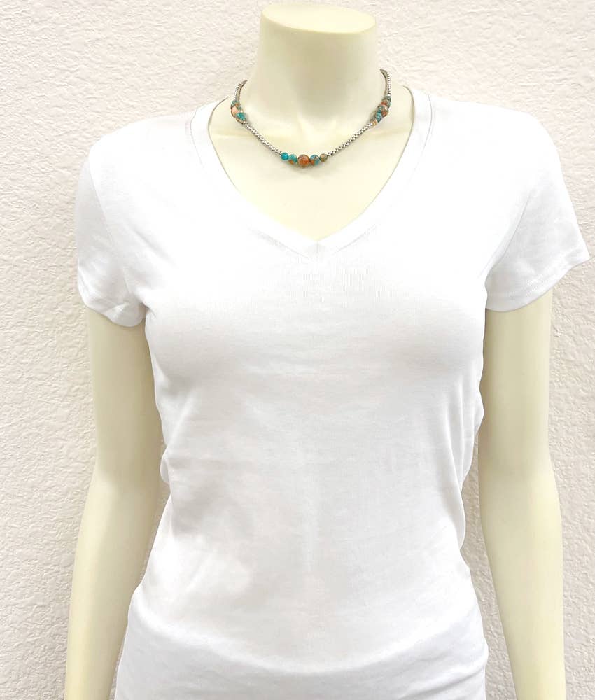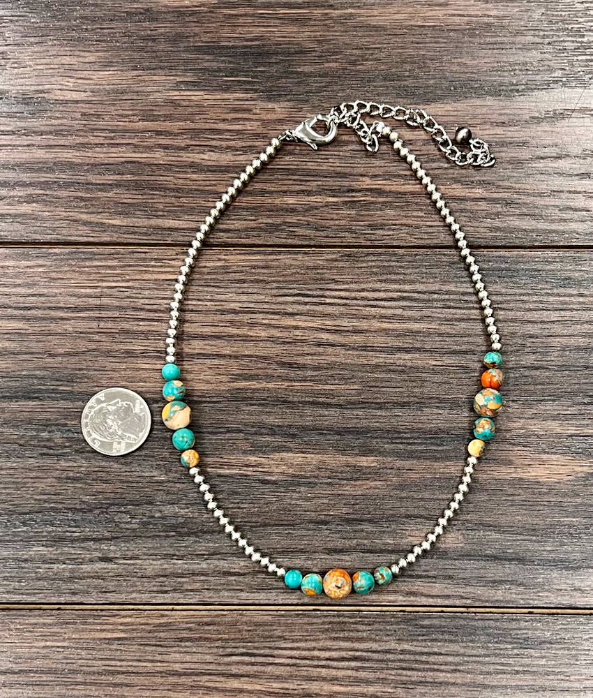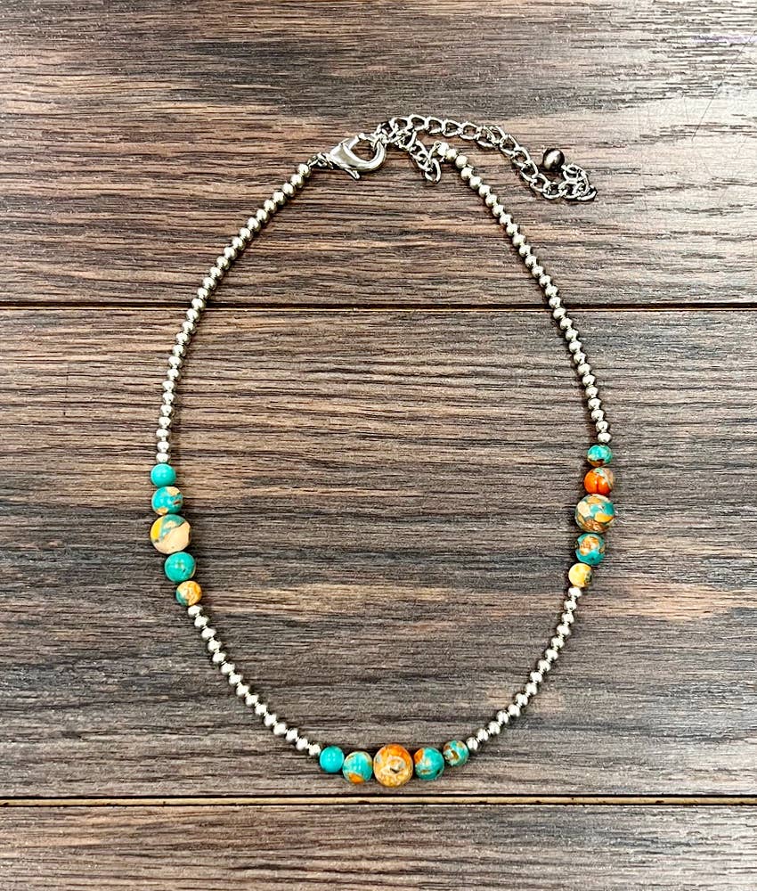 739542, Handmade 15" Sliver Navajo Gemstone Necklace