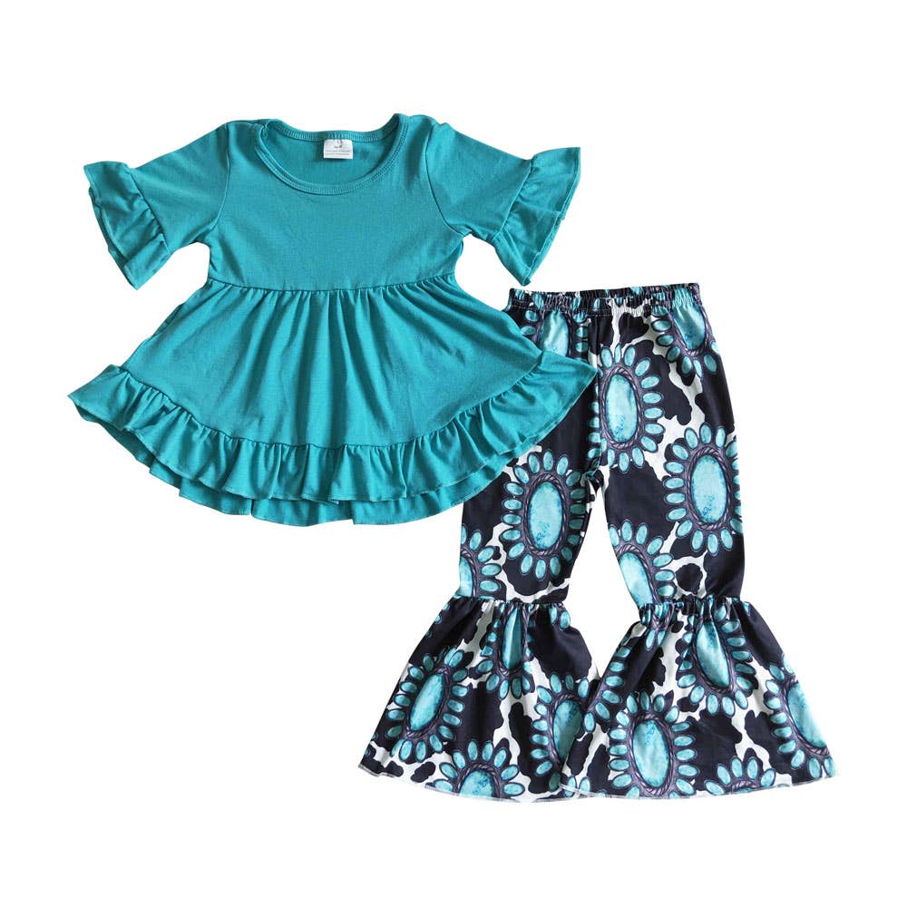 π Turquoise Hi-Low Tunic & Bell Pants β Boho Chic for Little Trendsetters Let your baby girl shine in this...
