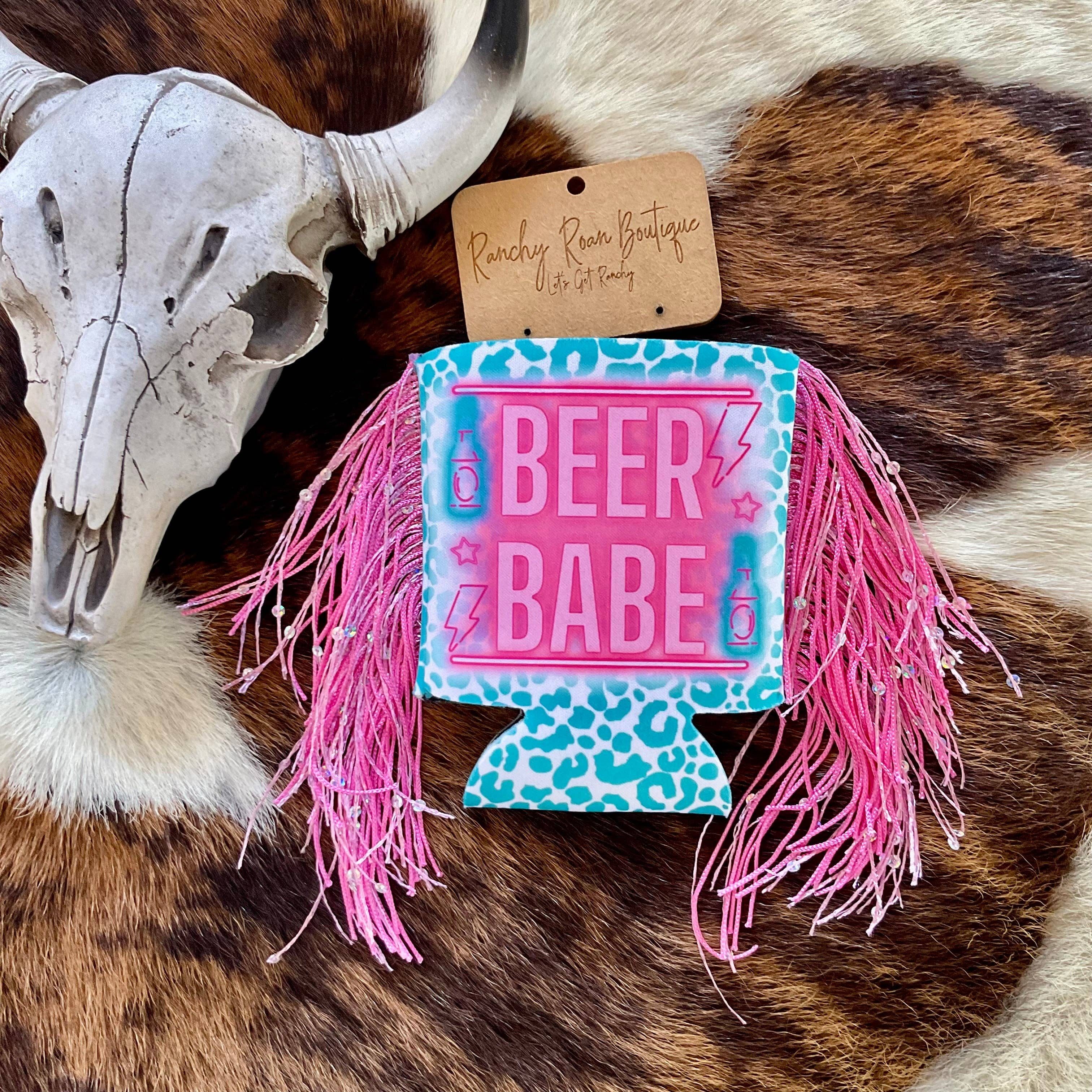 Bring bold Western energy to your boutique with the Beer Babe Fringe Can Cooler. Designed for cowgirls who love to...