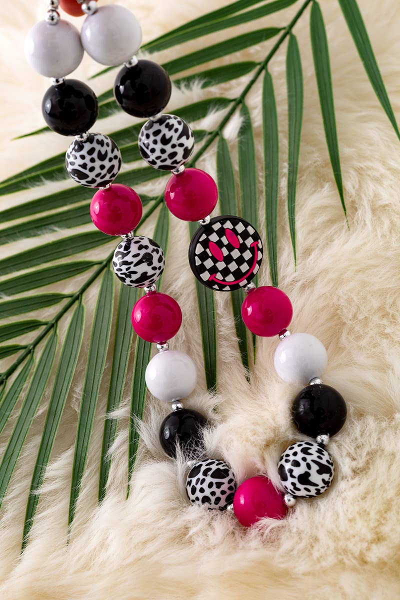 MULTI-PRINTED BUBBLE NECKLACE W/EMOJI PENDANT.