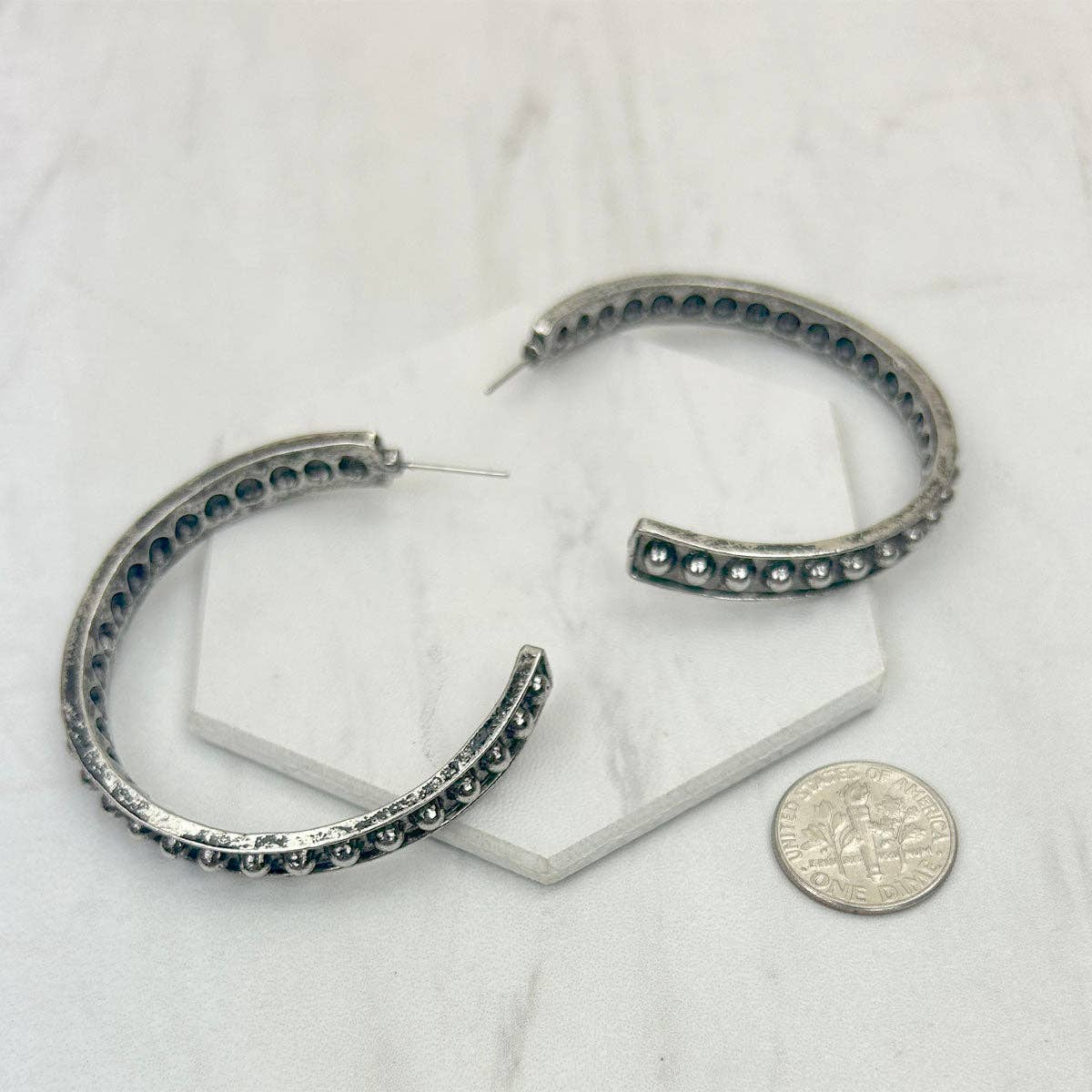 Introducing the ER240810-03, a pair of silver metal circle earrings from Western Elite Jewelry. These earrings, designed with a modern...