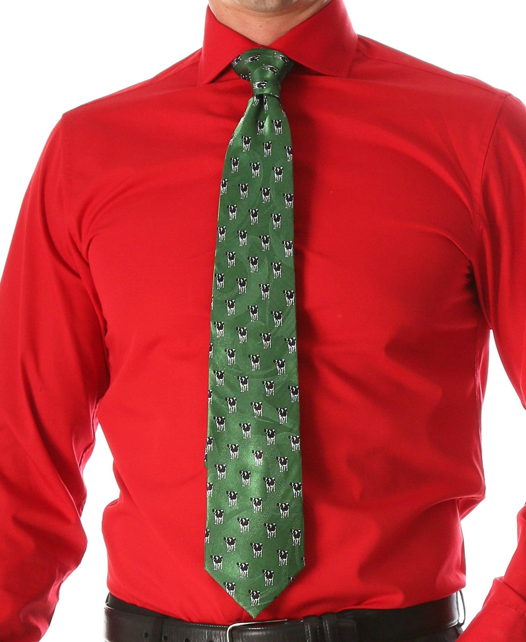 Cow Green Necktie with Handkerchief Set - 3.5" Width x 59" Length - 100% Microfiber