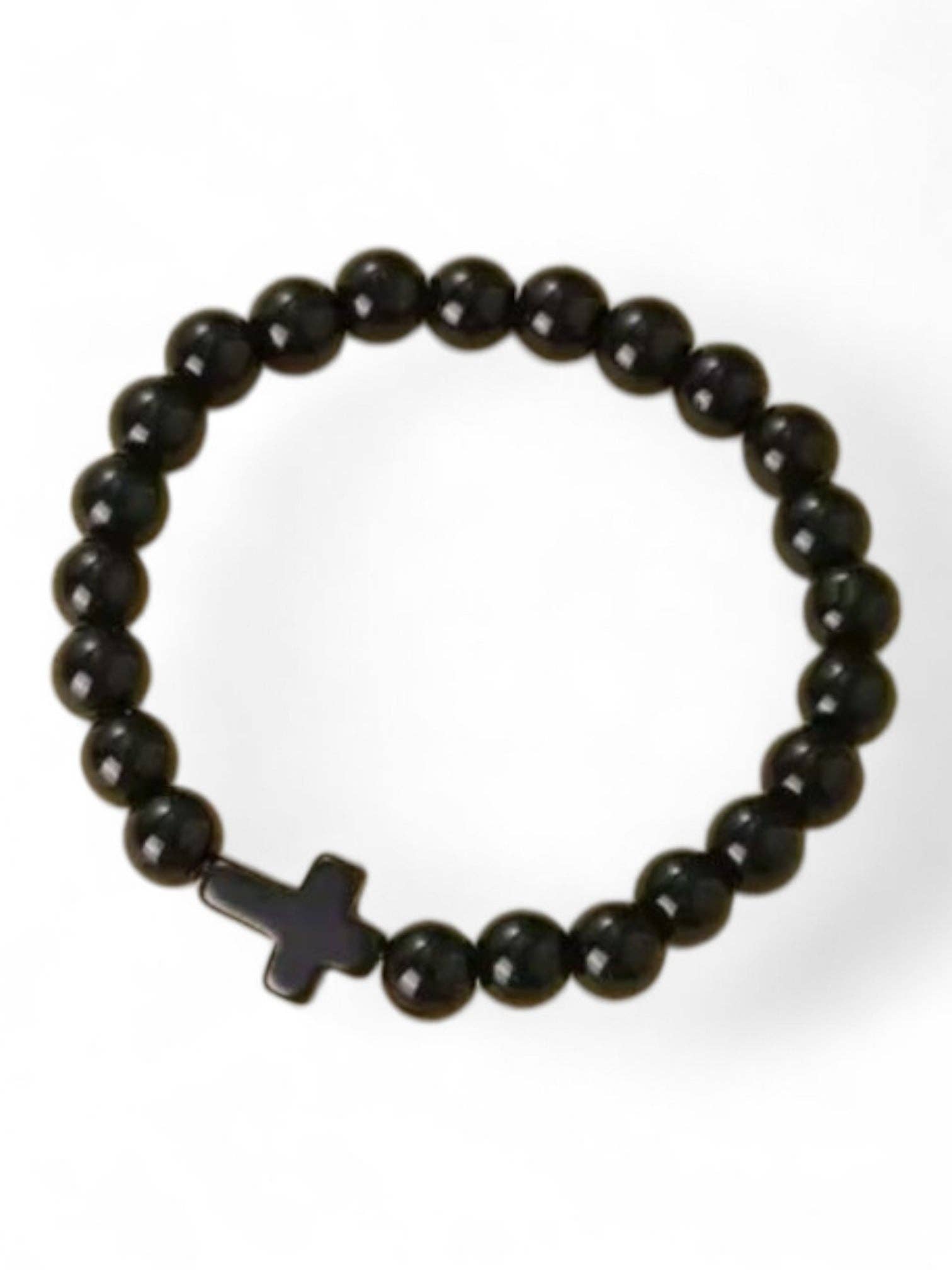 Add a touch of fun to your accessory game with our Crackled Stone Stretch Cross Bracelets in Pink or Black....