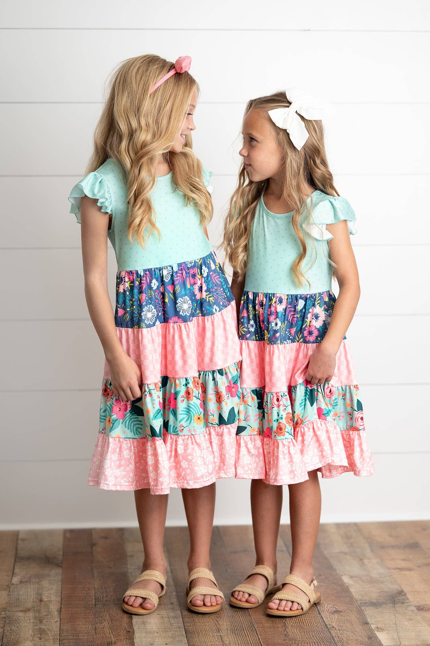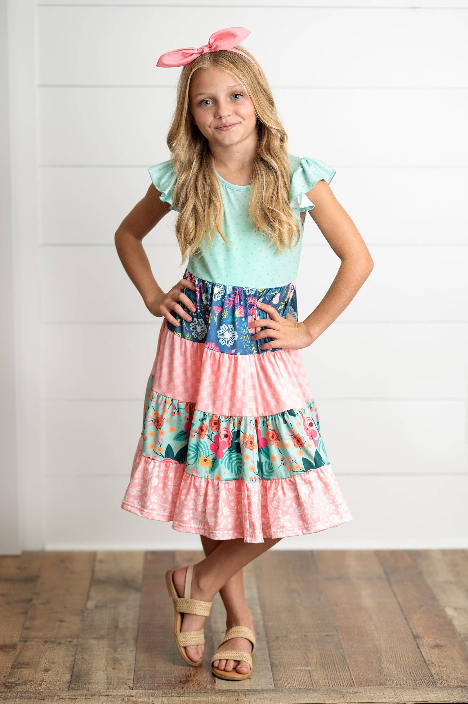 Girls Ava Mint Pink Spring Summer Easter Floral Tiered Dress