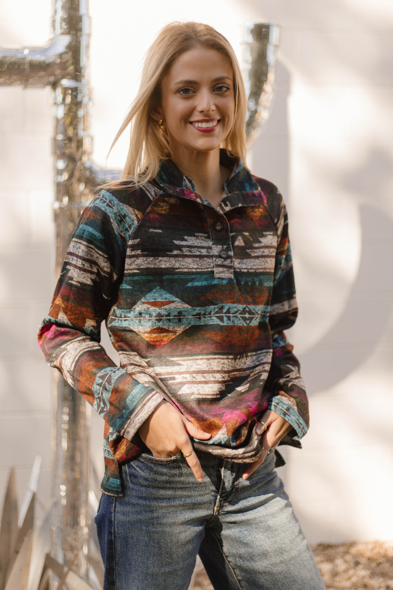 Get ready to cozy up in style with our Mount Whitney Pullover! This knitted pullover features a unique aztec design...