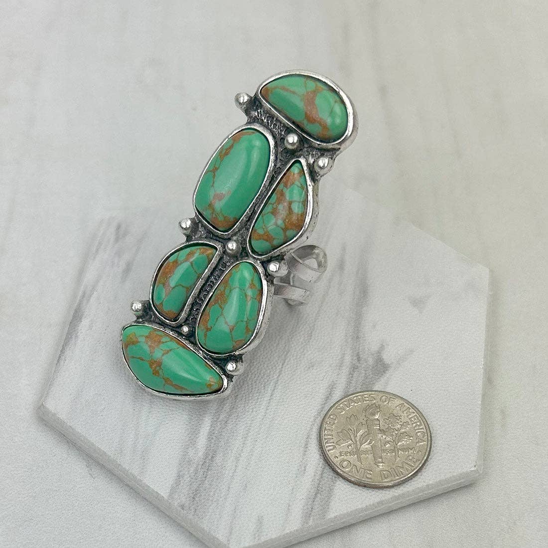 Step into the world of elegance and style with Western Elite Jewelry's Silver Metal Ring featuring a stunning green turquoise...