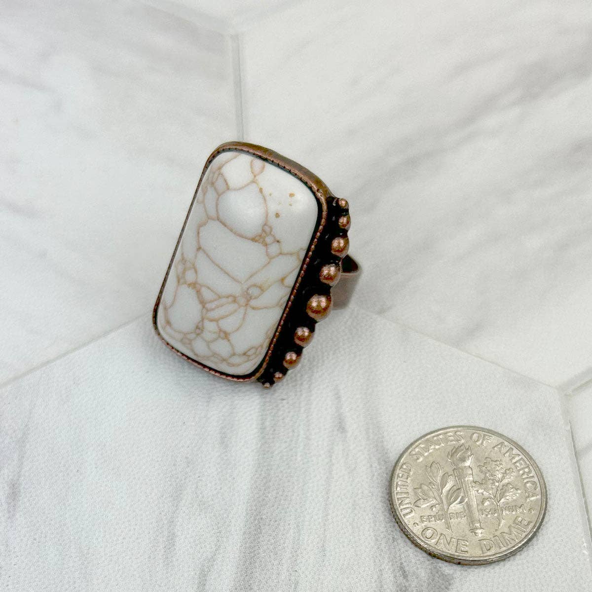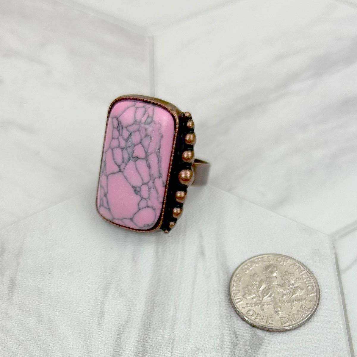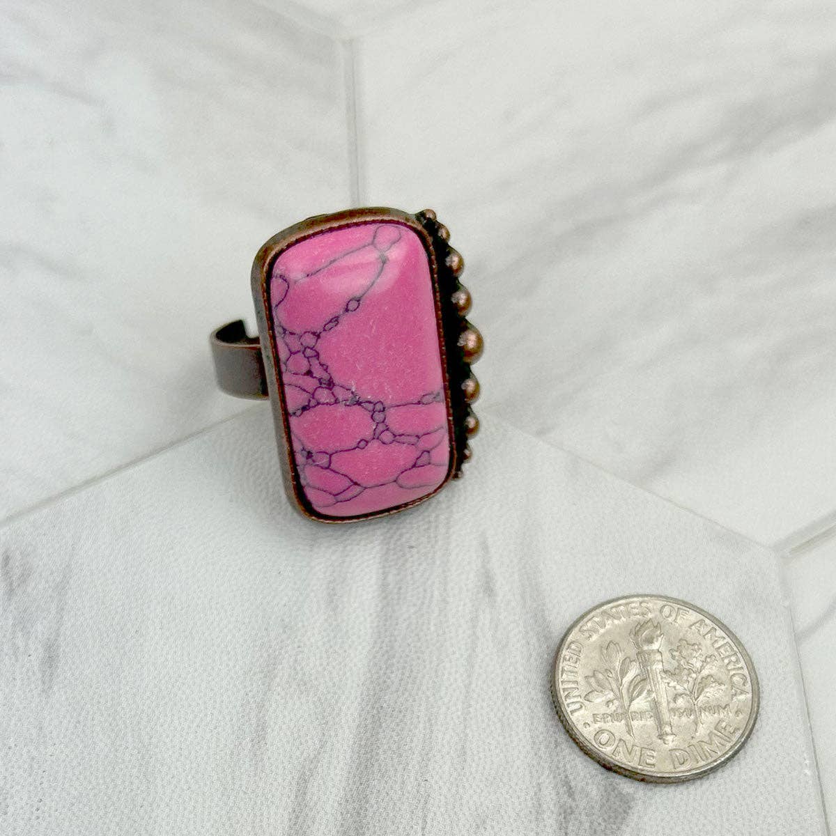 Copper metal with blue turquoise rectangle stone adjustable Ring