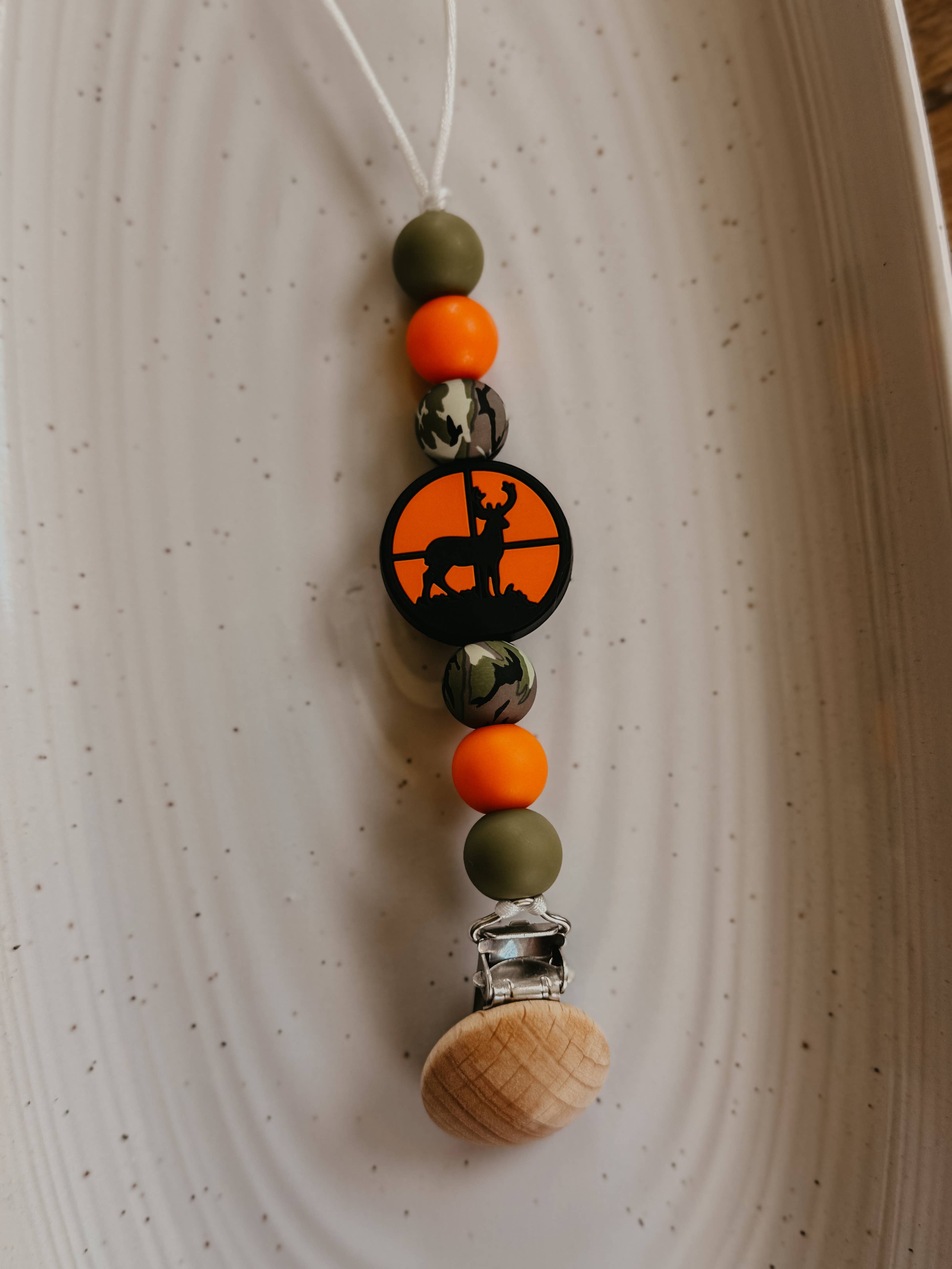 Western/ hunter pacifier clip Silicone beads and wooden clip