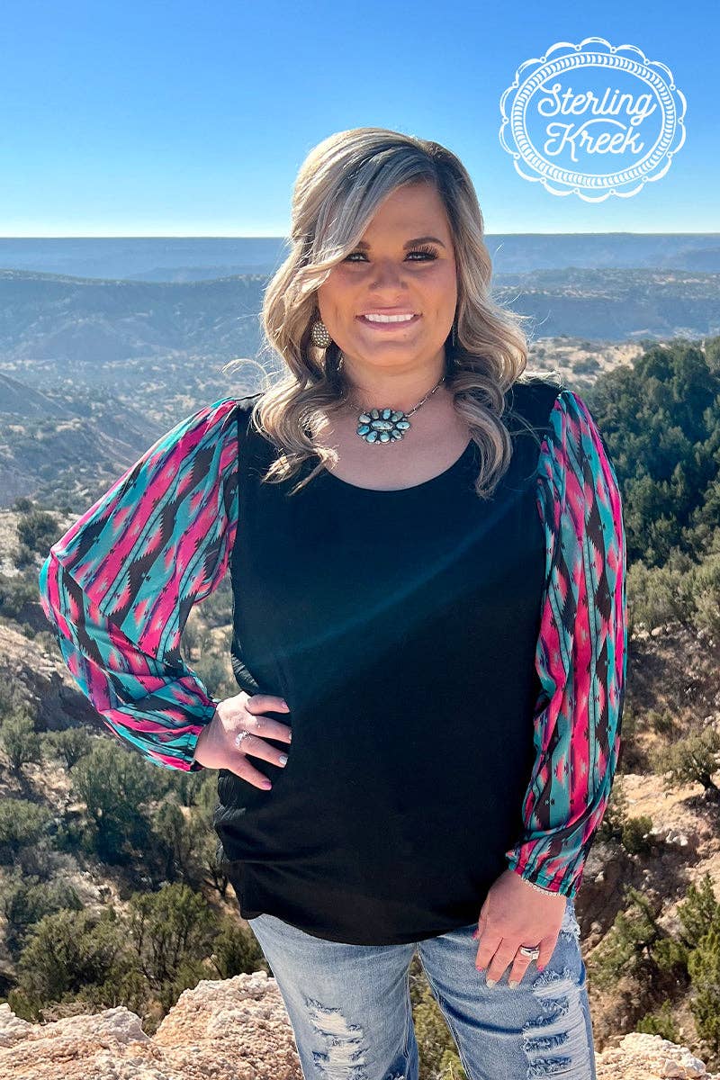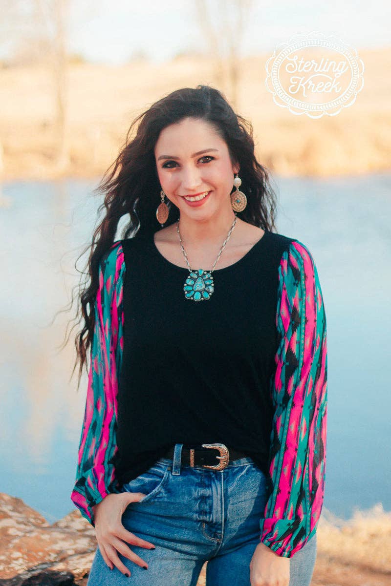 This top is so fun! This is another bubble sleeve with the perfect color combo! The pink, and turquoise pop...