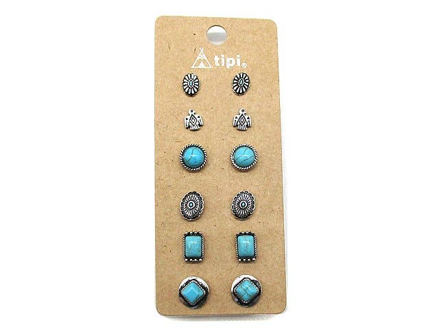 Western 6 Pair Dainty Post Earring Set