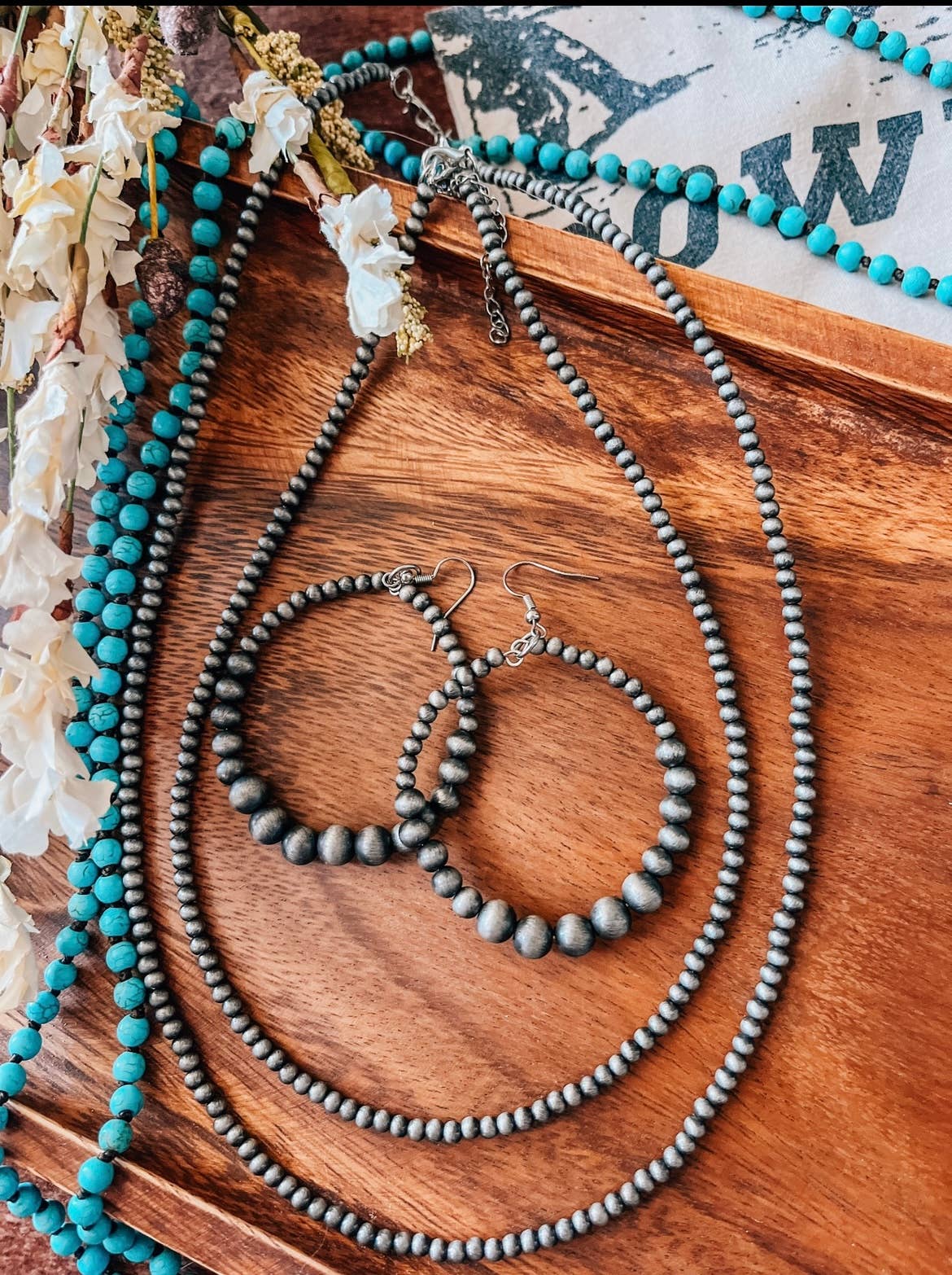 Western Accessory Faux Navajo Pearl Hoop Earrings