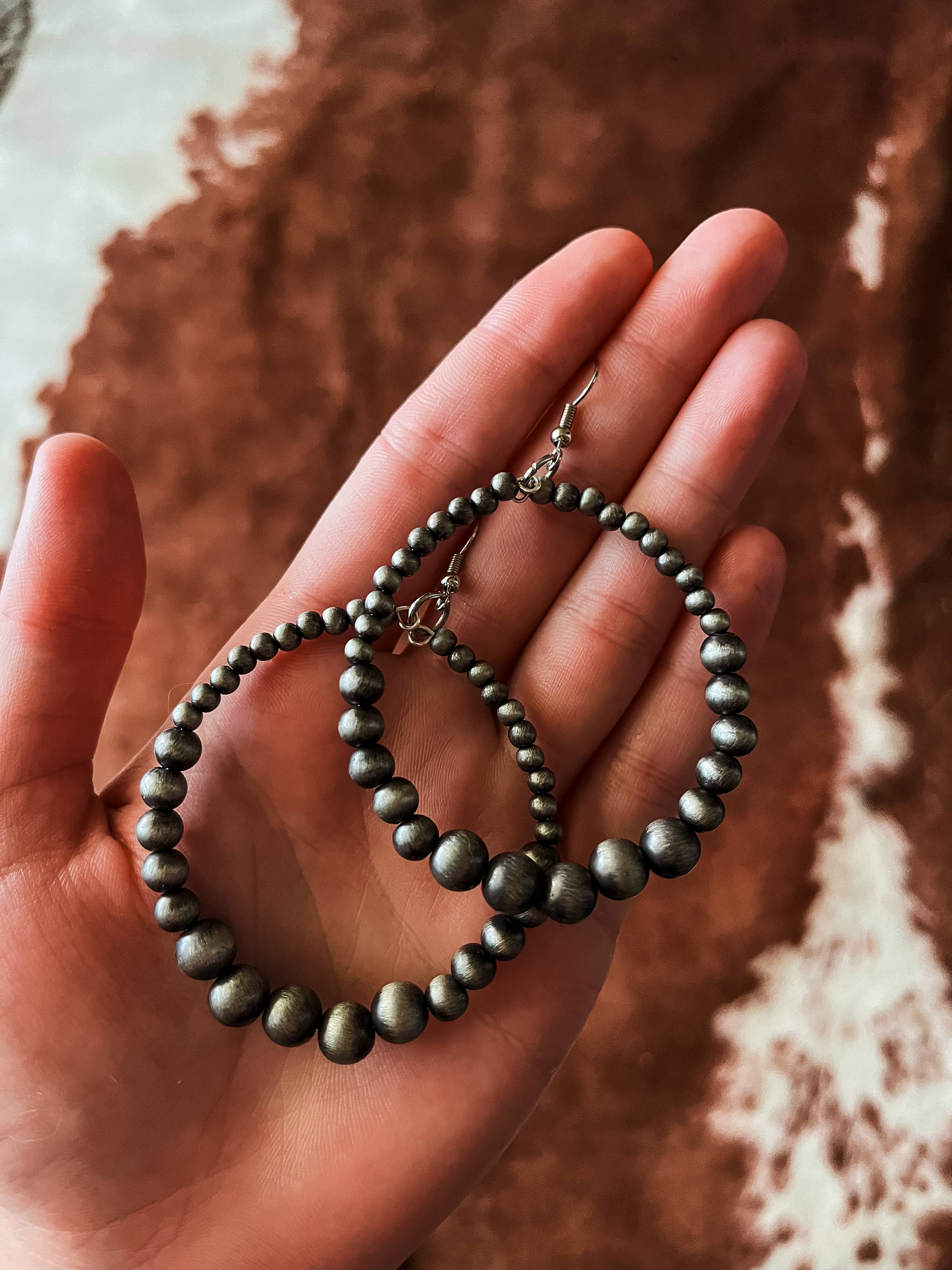 *Faux acrylic Navajo pearl style beads- stylish hoop shape with nickel free, hypoallergenic earring hooks. Neutral, classic western style that...