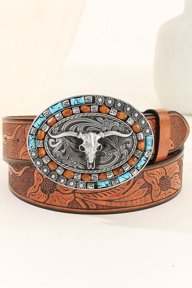 Western Bull Monogram PU Leather Belt MOQ 3pcs ZK1313