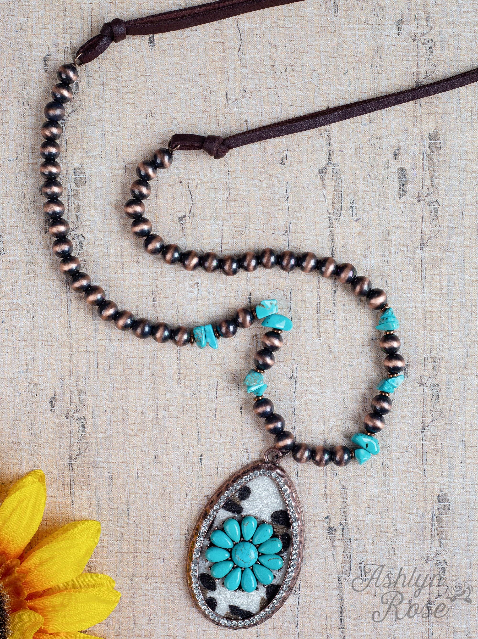 Western Gal Leopard Teardrop Necklace with Bronze and Turquoise