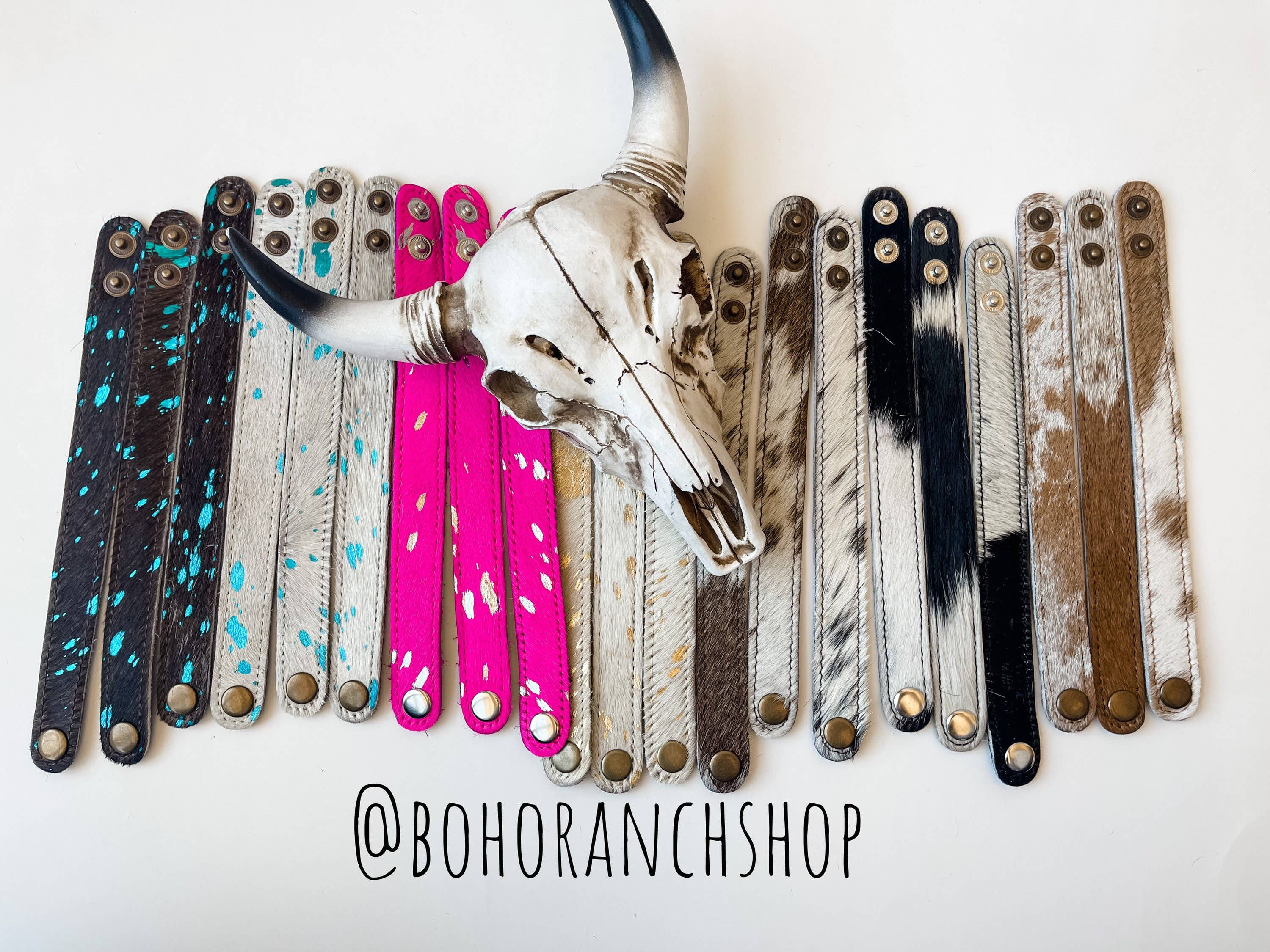 Cowhide Cuff Bracelet | Hair On Cowhide + Leather | Southwestern Western - Jewelry - Makes A Great Gift! Statement...