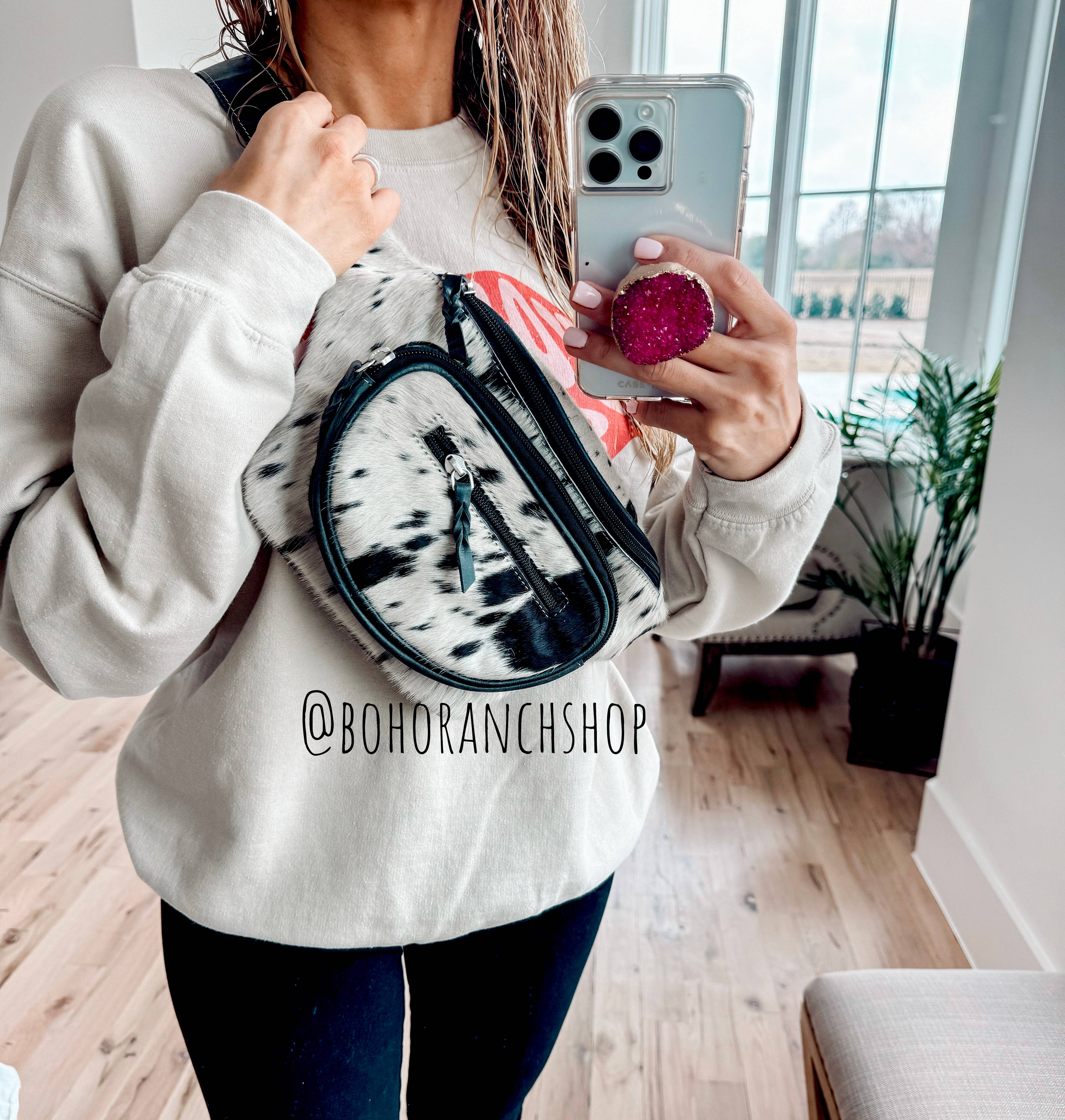 Western Hairon Cowhide Fanny Pack - bum bag sling bag