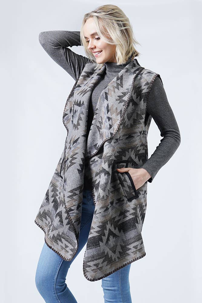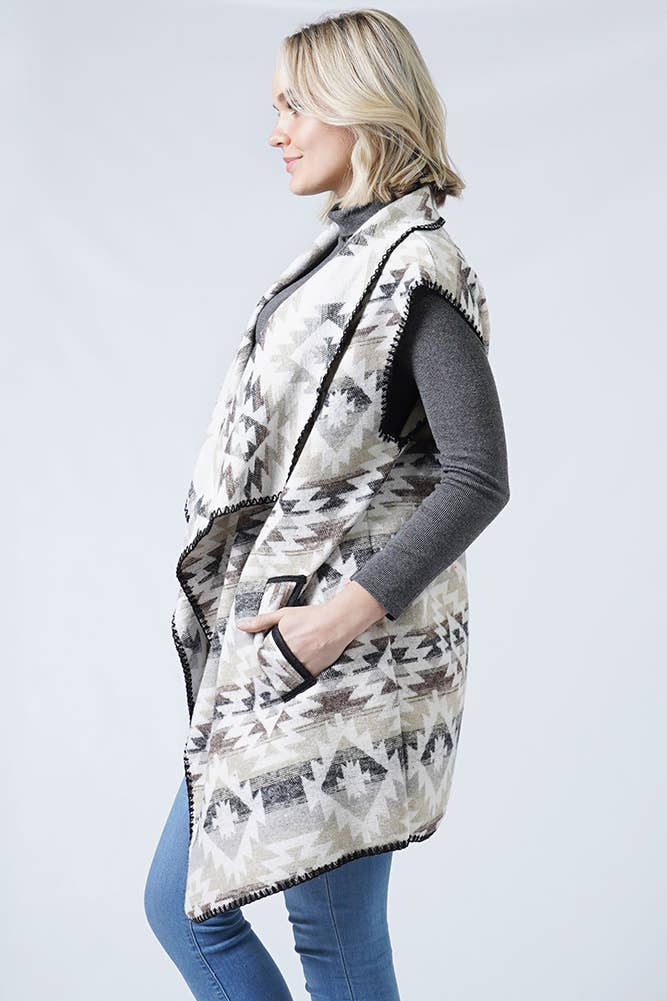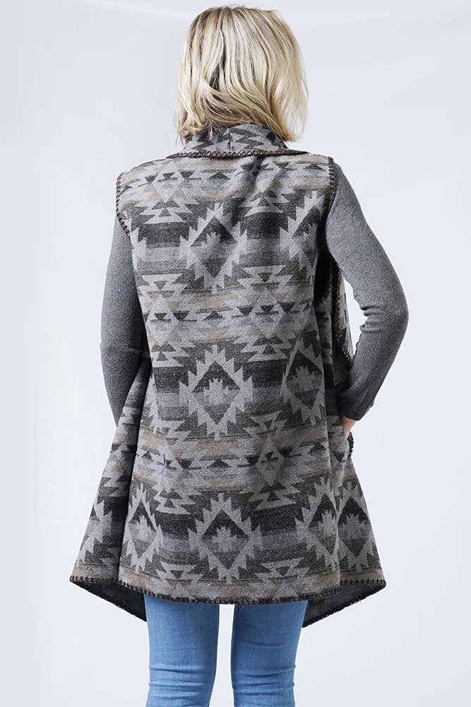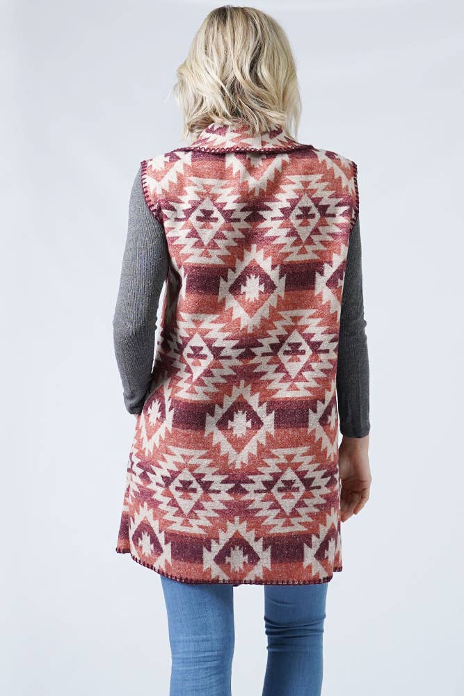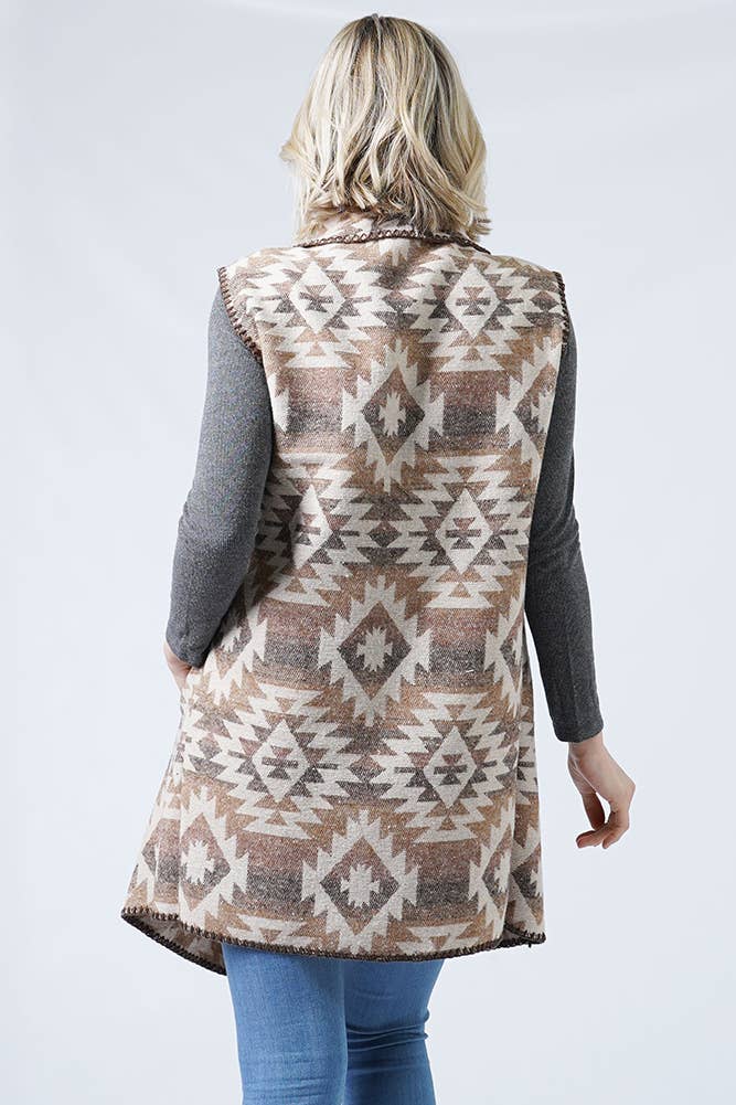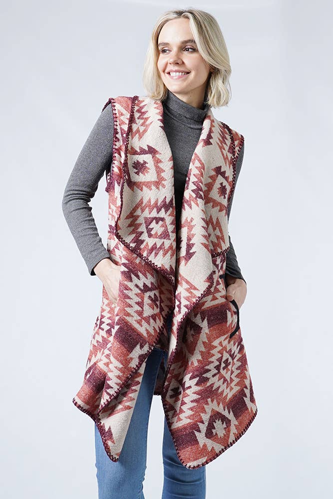 Western Pattern Vest with Pocket 100% Polyester One Size
