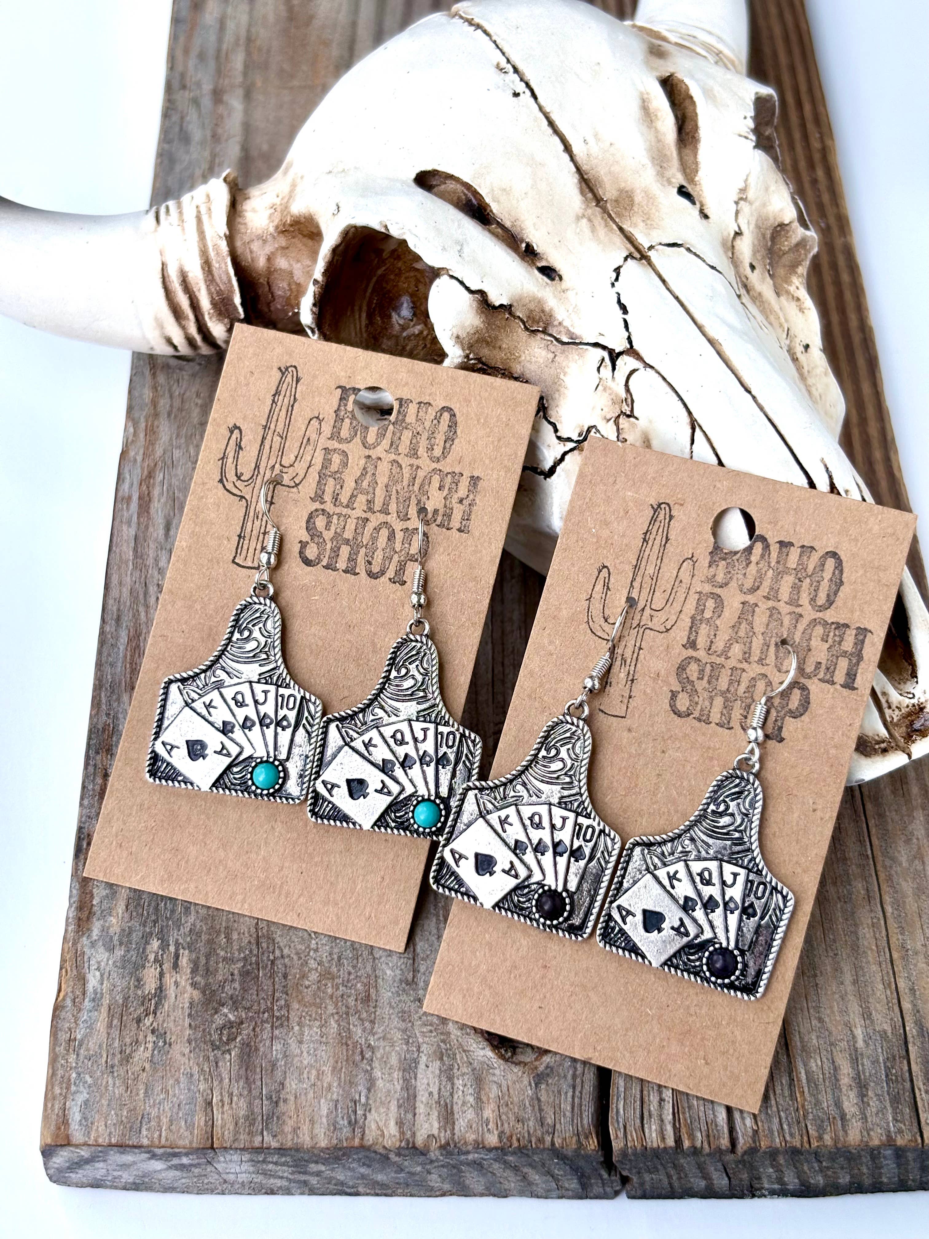 Western Playing Card with Stone Drop Dangle Earrings