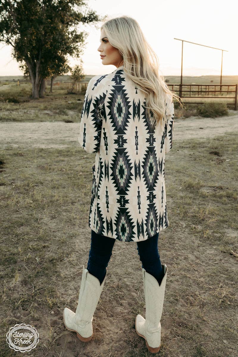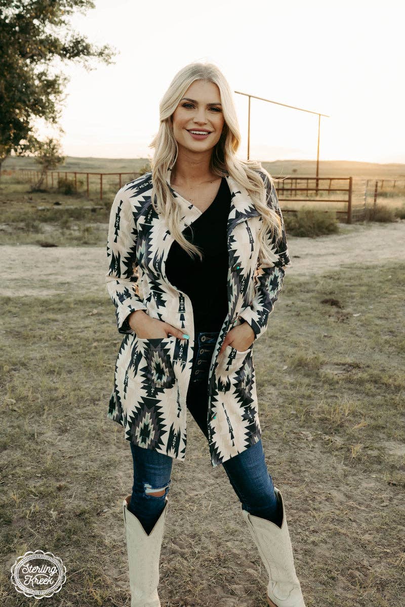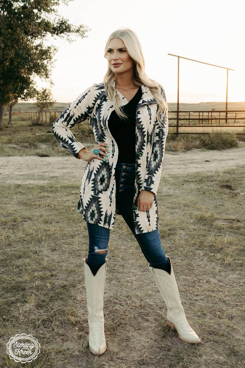 This Western Saint Jacket is sure to make a statement - with its white suede and bold aztec print, you'll...