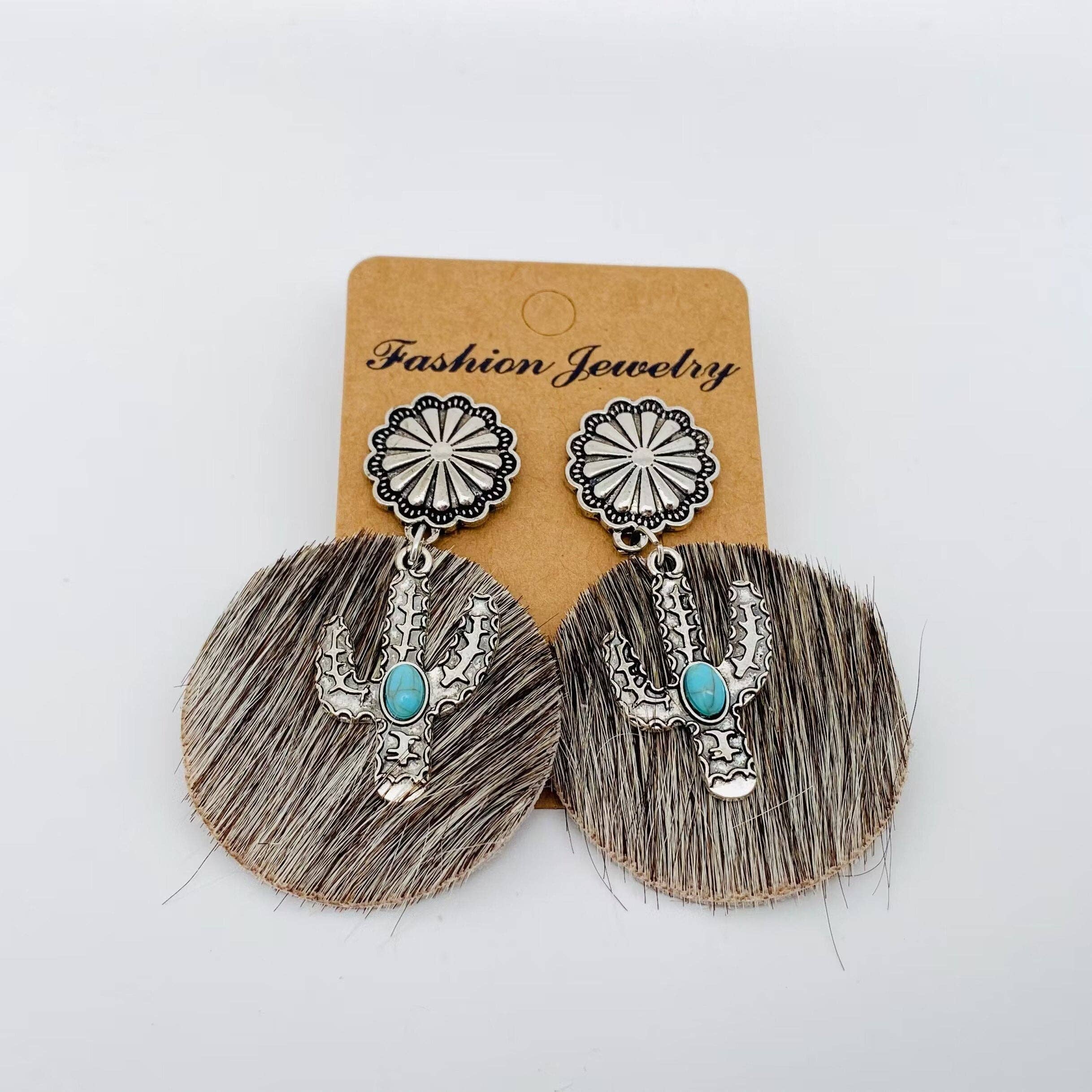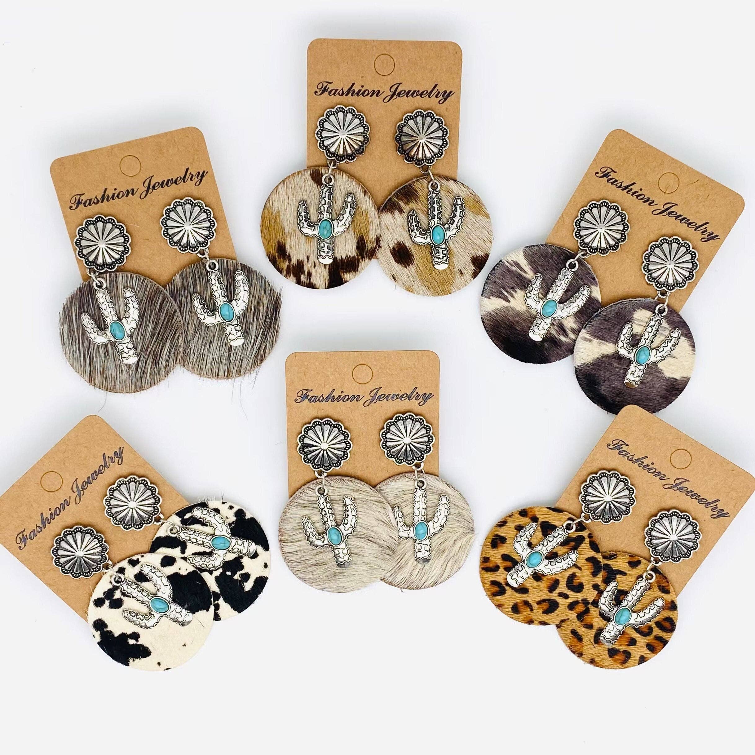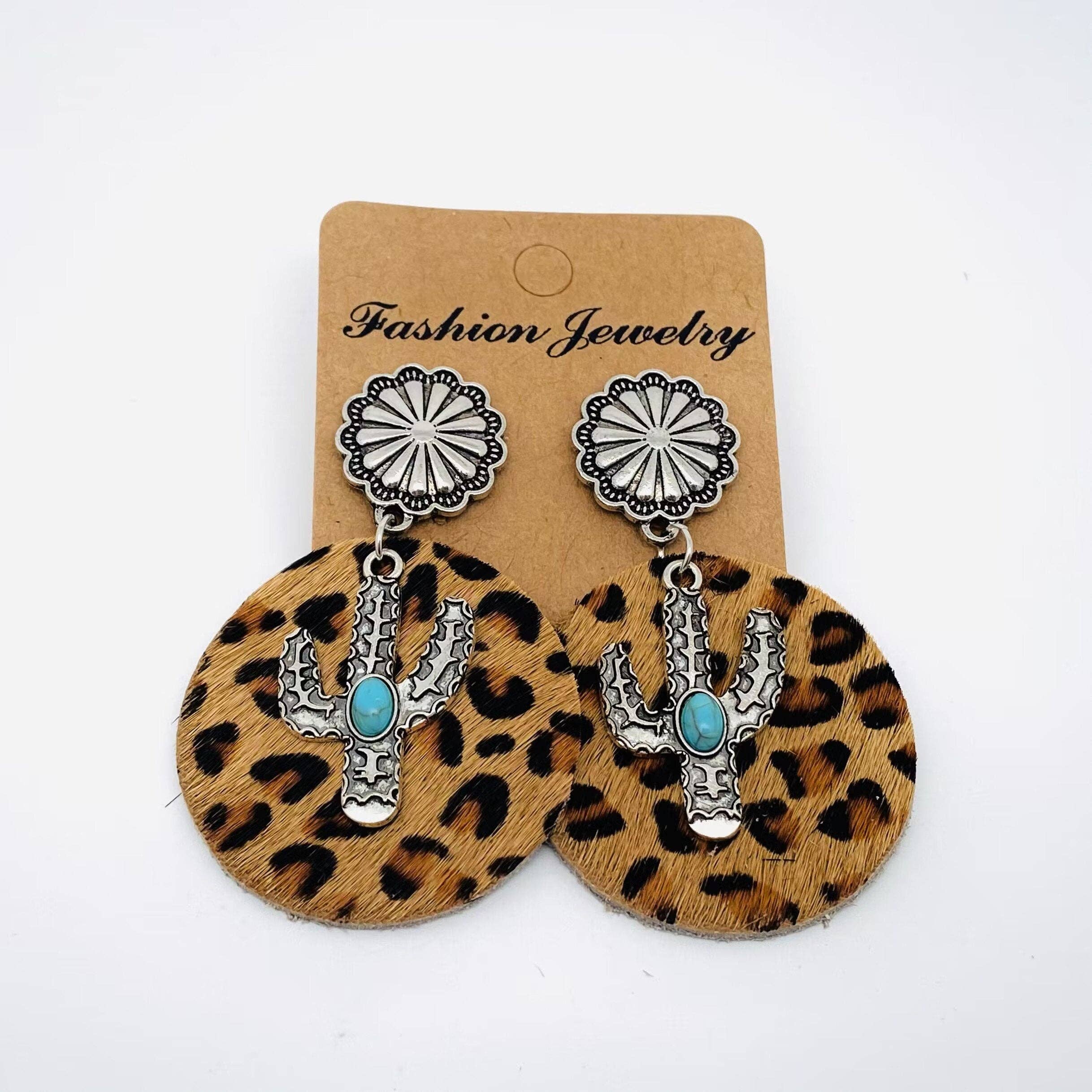 Western Style Cactus Animal Skin Double Charm Earrings - WJ