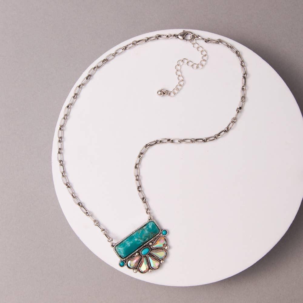 Western Turquoise Bar Pendant Necklace