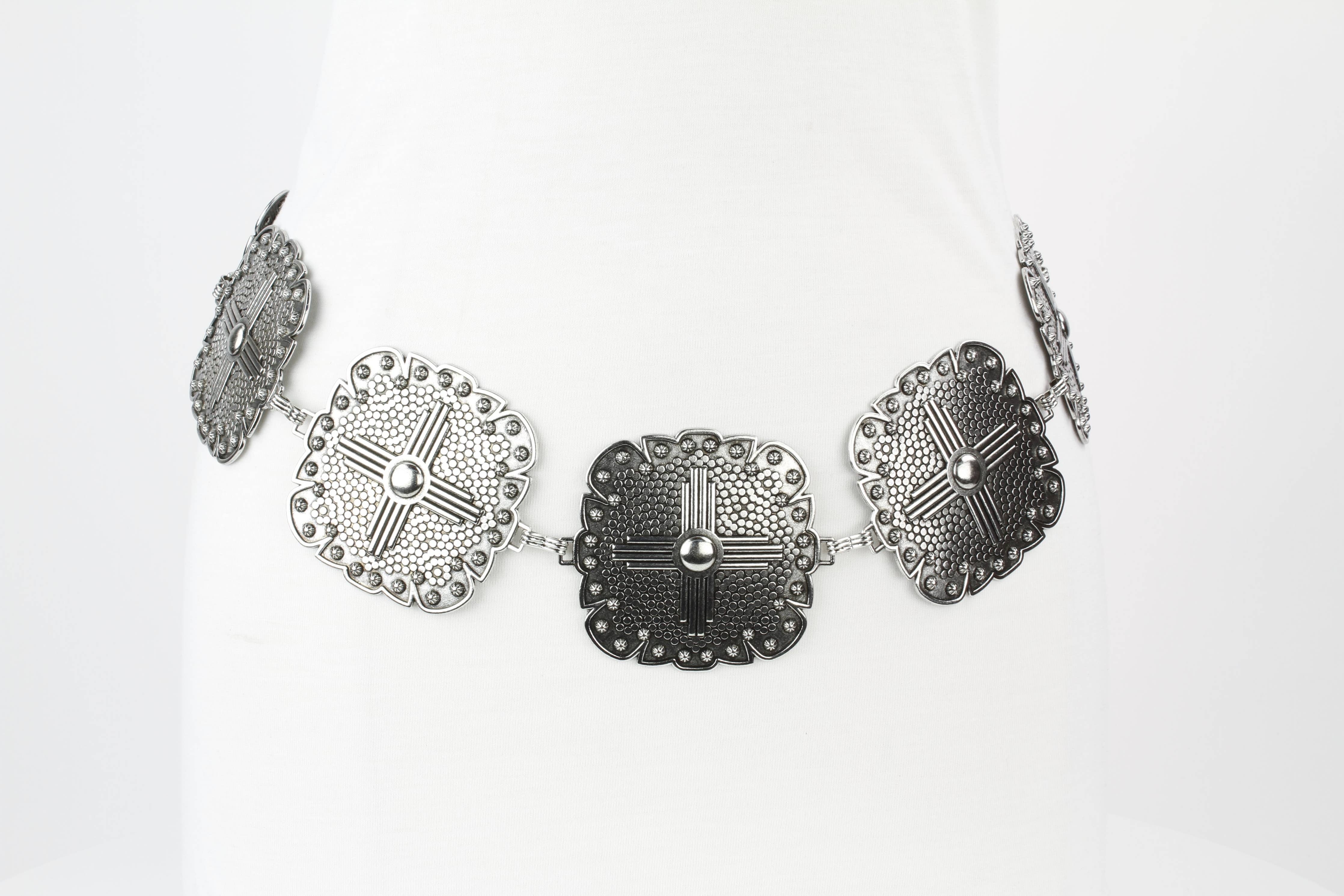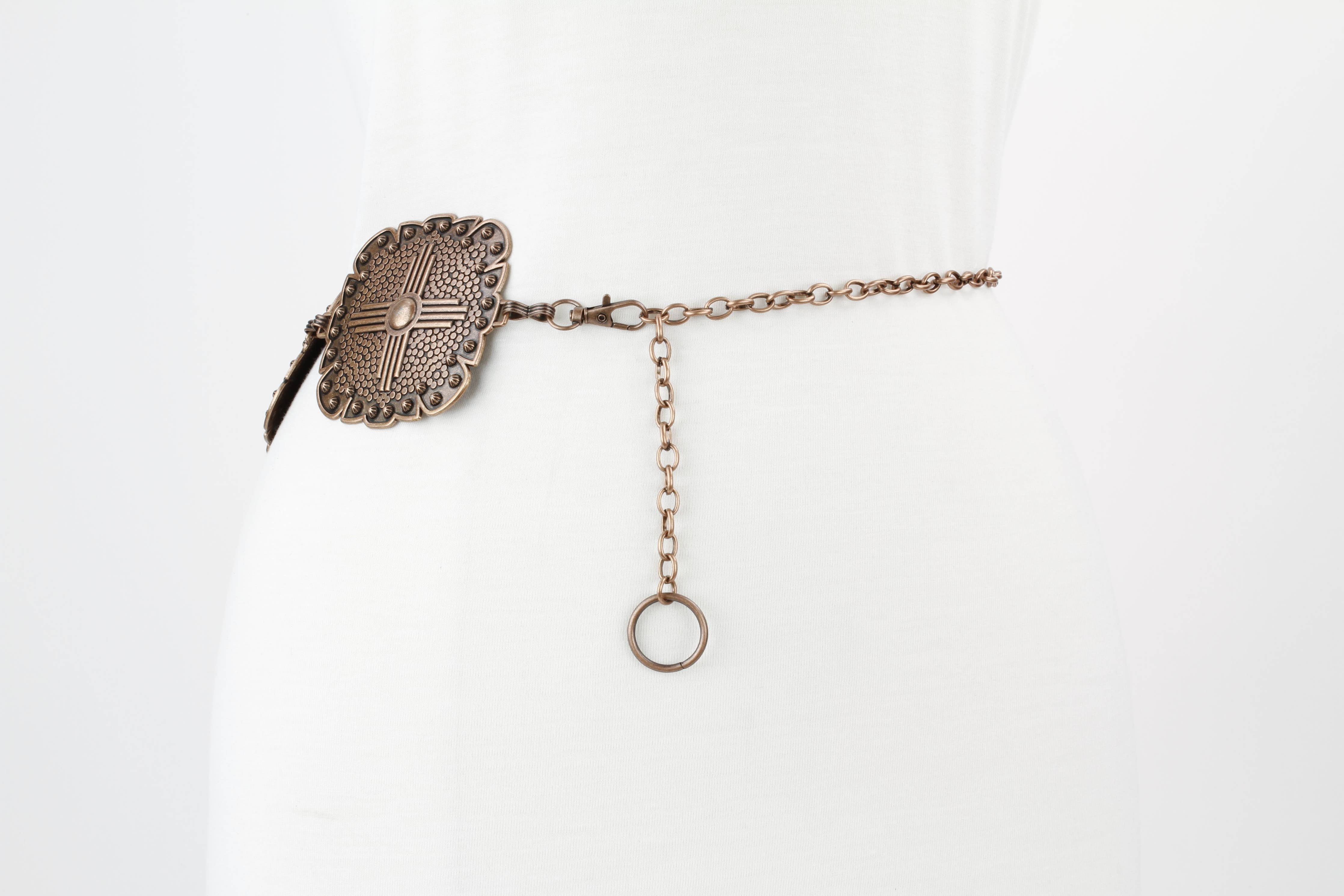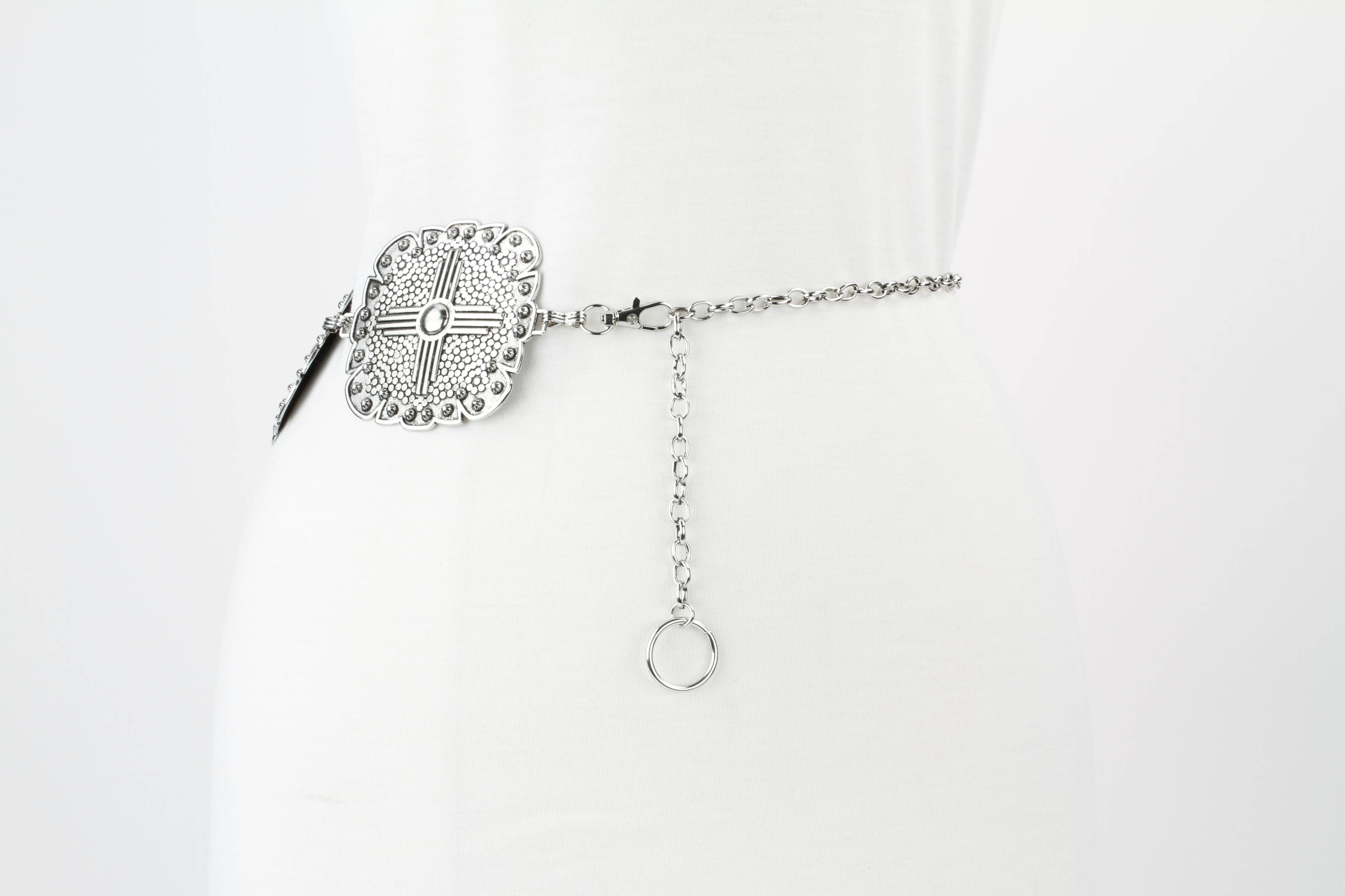 This Western-inspired Medallion Chain Belt adds a touch of bold elegance to any outfit. It features a series of ornate,...